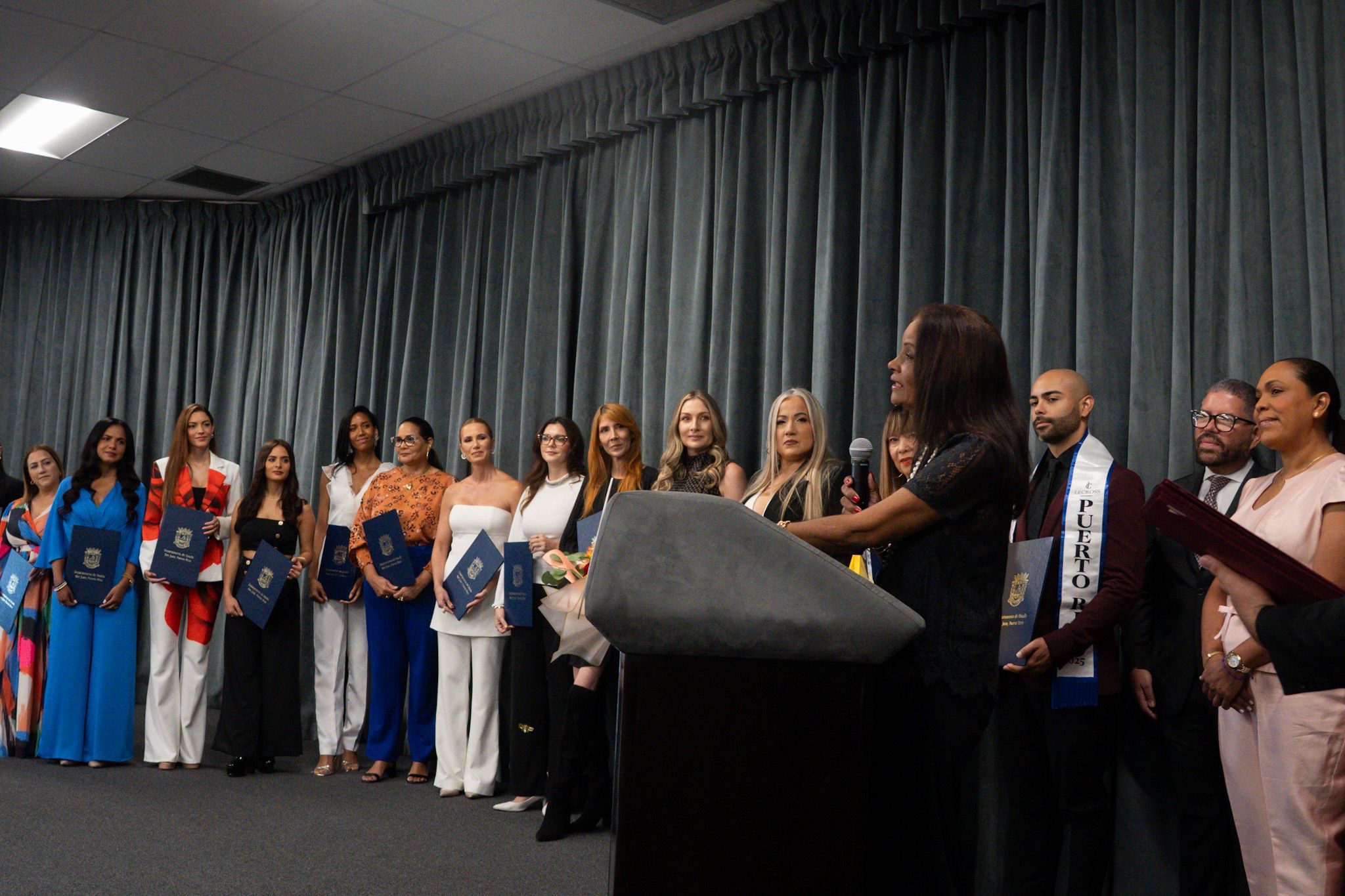 Durante la ceremonia, la secretaria de Estado y gobernadora interina, Rosachely Rivera, hizo entrega de proclamas oficiales a los principales directores y dueños de agencias de modelos de Puerto Rico, reconociendo su aportación al desarrollo del talento local y a la proyección internacional de la moda puertorriqueña.